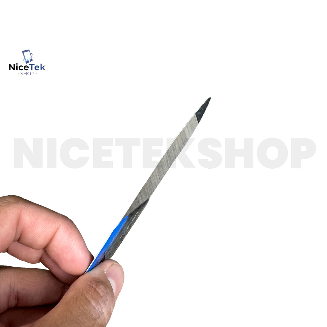 Espátula flexível de precisão utilizada para abertura, raspagem e separação de componentes em dispositivos eletrônicos.