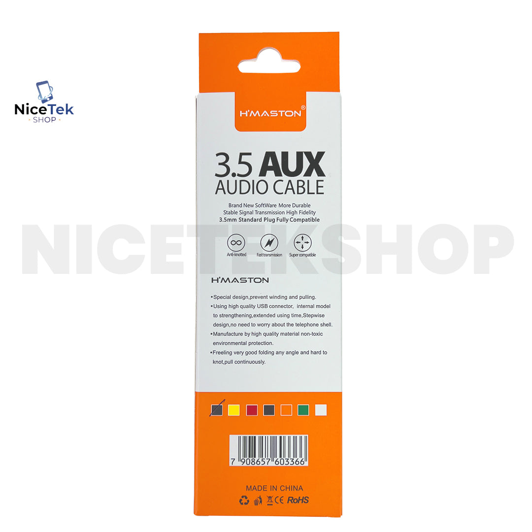• Tipo de conector: P2 (3,5 mm) macho × P2 (3,5 mm) macho.